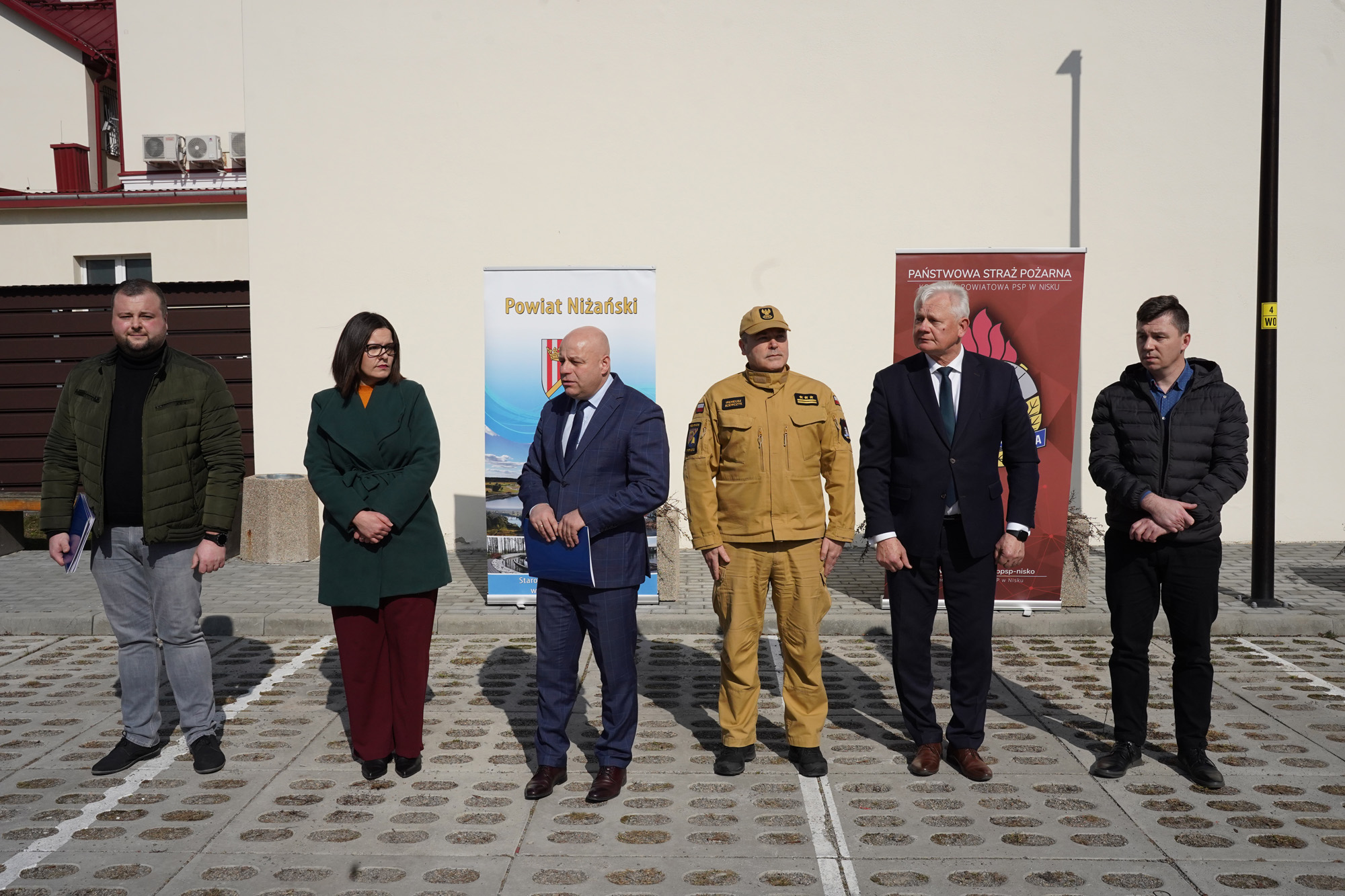 W uroczystym przekazaniu sprzętu udział wzięli Starosta Niżański Robert Bednarz, Wicestarosta Józef Sroka, Zastępca Komendanta Powiatowego Państwowej Straży Pożarnej w Nisku st. bryg. Ireneusz Szewczyk, Radna Rady Powiatu Niżańskiego Justyna Delekta oraz pracownicy Wydziału Organizacji, Spraw Obronnych i Zarządzania Kryzysowego Starostwa Powiatowego w Nisku.