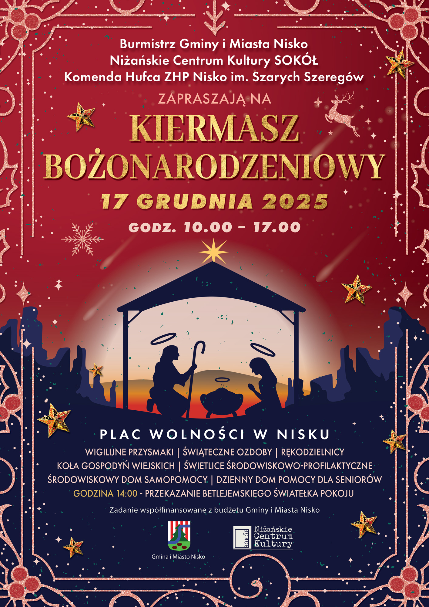 Świąteczna atmosfera już wkrótce zagości na Placu Wolności w Nisku, gdzie 17 grudnia 2025 roku odbędzie się wyjątkowy Kiermasz Bożonarodzeniowy. Wydarzenie, organizowane przez Burmistrza Gminy i Miasta Nisko, Niżańskie Centrum Kultury „Sokół” oraz Komendę Hufca ZHP Nisko im. Szarych Szeregów, zaplanowano w godzinach od 10.00 do 17.00. Mieszkańcy oraz wszyscy odwiedzający będą mogli zanurzyć się w świątecznym klimacie, podziwiając bogatą ofertę lokalnych wystawców oraz degustując tradycyjne wigilijne specjały.