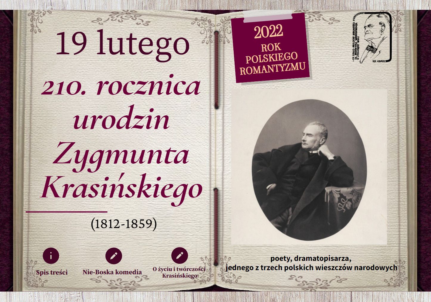 19 lutego minęło 210 lat od dnia narodzin Zygmunta Krasińskiego, polskiego poety i dramatopisarza. Jest uznawany za trzeciego wieszcza narodowego, obok Adama Mickiewicza i Juliusza Słowackiego.
