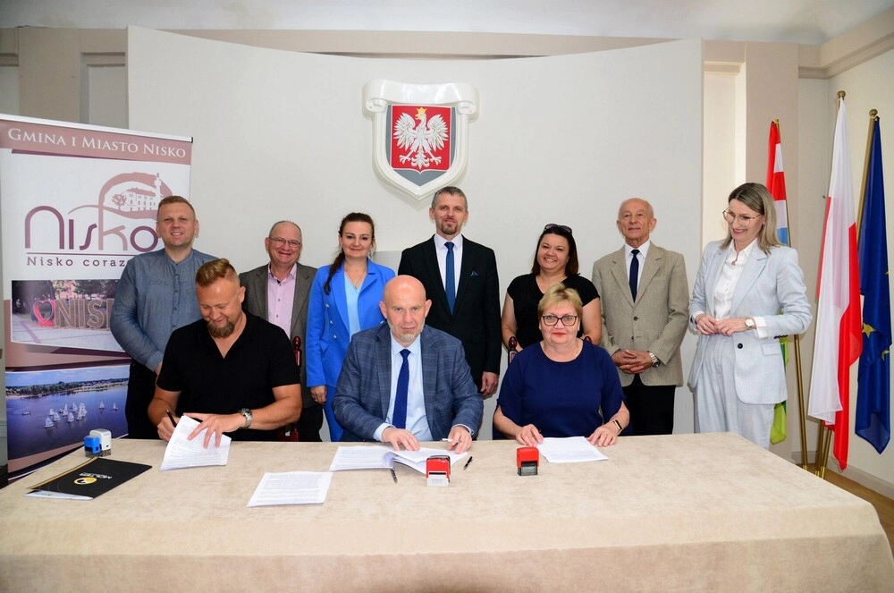 Pisemną umowę zawarli dr Konrad Krzyżak Burmistrz Gminy i Miasta Nisko, z upoważnienia Skarbnika Gminy i Miasta Nisko – Kierownik Referatu Finansowego Elżbieta Mitrowicz oraz przedstawiciel Wykonawcy Łukasz Molter Prezes Zarządu Przedsiębiorstwa MOLTER Sp. z o.o. z siedzibą w Głogowie Małopolskim. Dokumenty podpisano w obecności Katarzyny Ożóg-Bąk I Zastępcy Burmistrza Gminy i Miasta Nisko, Adama Sikory II Zastępcy Burmistrza Gminy i Miasta Nisko, Wiceprzewodniczących Rady Miejskiej w Nisku Tadeusza Błażejczaka i Tadeusza Wolaka oraz Radnych Rady Miejskiej w Nisku Barbary Potockiej i Grzegorza Bednarza. W sfinalizowaniu umowy uczestniczyła również Anna Wołoszyn Kierownik Referatu Zamówień Publicznych.