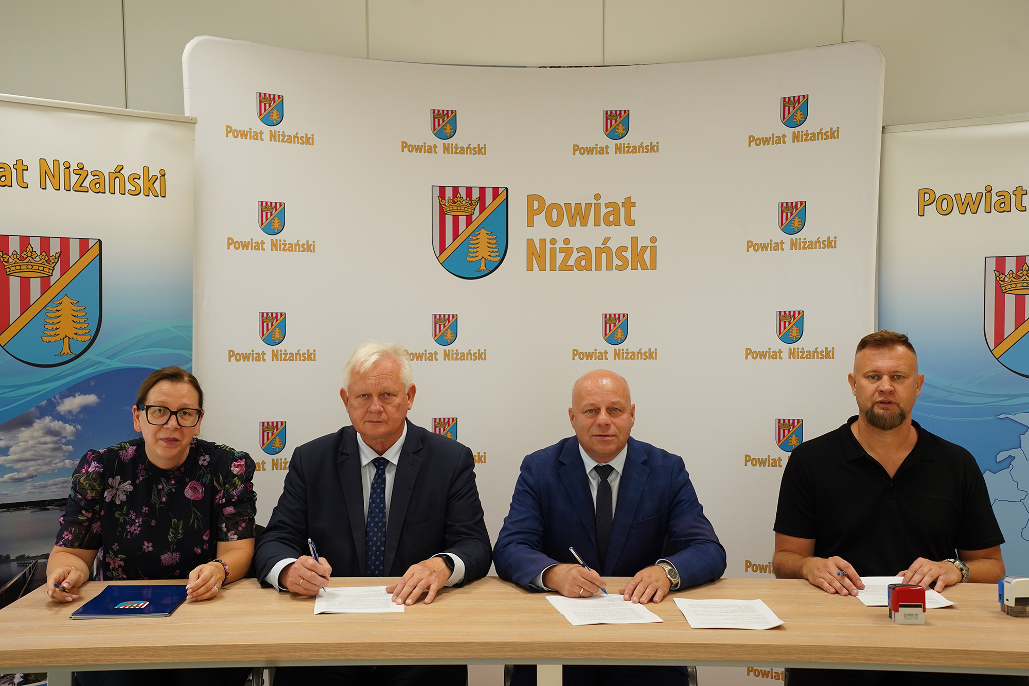 Umowę na realizację powyższego zadania podpisali Starosta Niżański Robert Bednarz i Wicestarosta Józef Sroka oraz Łukasz Molter – Prezes Firmy Molter Sp. z o.o., w obecności Naczelnika Wydziału Gospodarki Mieniem Powiatu Jadwigi Maluga.