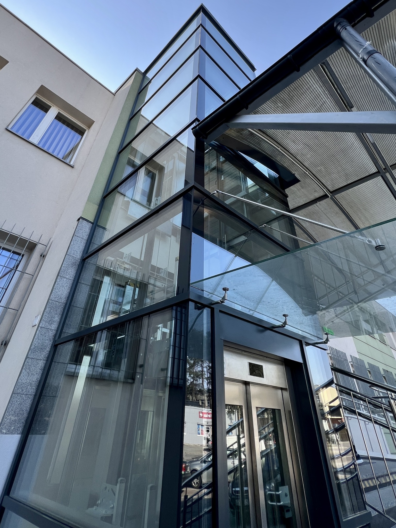 Z myślą o osobach starszych, pacjentach z niepełnosprawnościami oraz rodzicach z dziećmi w wózkach uruchomiono nowoczesną windę. Dzięki niej z poziomu chodnika można wygodnie i bezpiecznie dotrzeć na wyższe piętro budynku – bez konieczności pokonywania schodów.