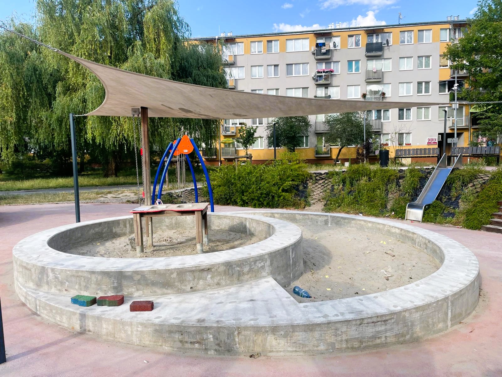 Drewniane elementy piaskownicy zostały zdemontowane – w ich miejsce pojawią się nowe, bezpieczne i trwałe konstrukcje. Wszystkie elementy zabawowe zostaną odmalowane i naprawione, by znów zachwycały kolorami i funkcjonalnością.
