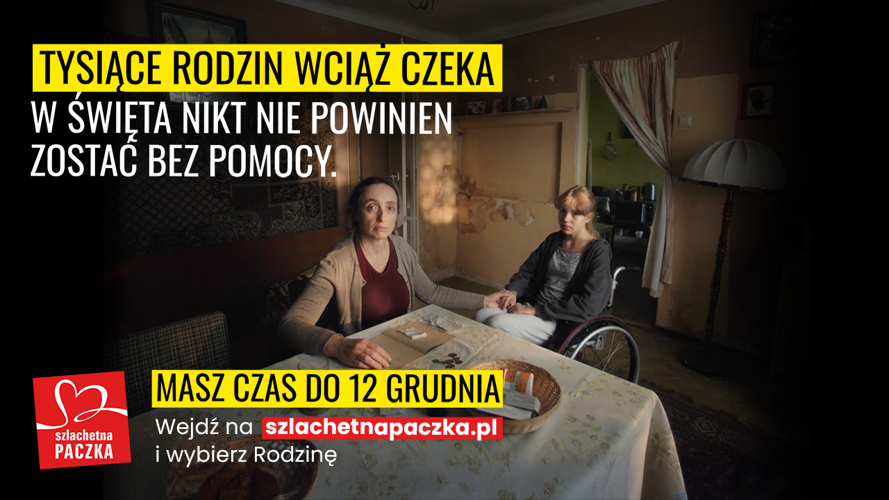 – Paczkowe rodziny, tak jak my wszyscy, czekają na święta: pani Maria pięć razy zaparza jedną torebkę herbaty, żeby na wigilię zostało jak najwięcej świeżych. Jak będą wyglądać święta tam, gdzie trzeba wybierać między rachunkiem za prąd, a proszkiem do prania? Oni nie poradzą sobie bez nas. Jeśli nie znajdziemy darczyńców, ich świat wróci do punktu wyjścia. Do zimnego pokoju i ciszy, samotności i bólu. Nie pozwólmy na to! Wejdź na szlachetnapaczka.pl i zostań darczyńcą. Nie musisz robić wszystkiego sam. Wystarczy, że zrobisz pierwszy krok – wybierzesz rodzinę. Masz czas tylko do 12 grudnia. Później NIC się nie zmieni. Z Tobą może zmienić się wszystko – dodaje Konrad Kruczkowski ze Szlachetnej Paczki.