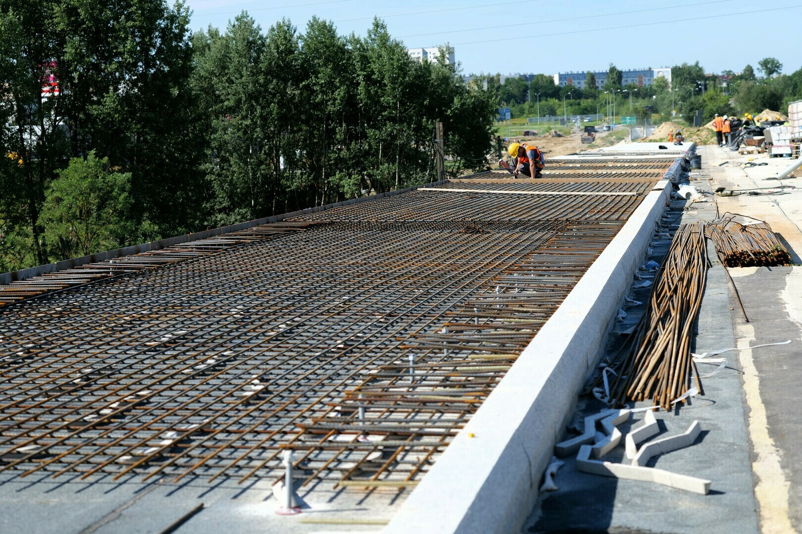 Co istotne, obiekt powstaje z wykorzystaniem rzadko stosowanej w Polsce technologii MSS (Movable Scaffolding System) – systemu szalunku przejezdnego. To nowoczesne rozwiązanie, w którym deskowanie o odpowiedniej geometrii przesuwa się wzdłuż osi budowanego obiektu, z jednej podpory na kolejną, pozwalając na szybkie i precyzyjne wznoszenie konstrukcji mostowej.
