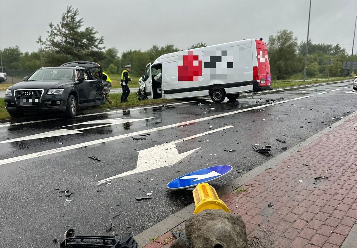 Stalowowolscy policjanci pracowali na miejscu wypadku drogowego na drodze krajowej nr 77 w miejscowości Agatówka. Doszło tam do zderzenia audi z dostawczym mercedesem. Oboje kierujący trafili do szpitala. Apelujemy o ostrożność na drodze.
