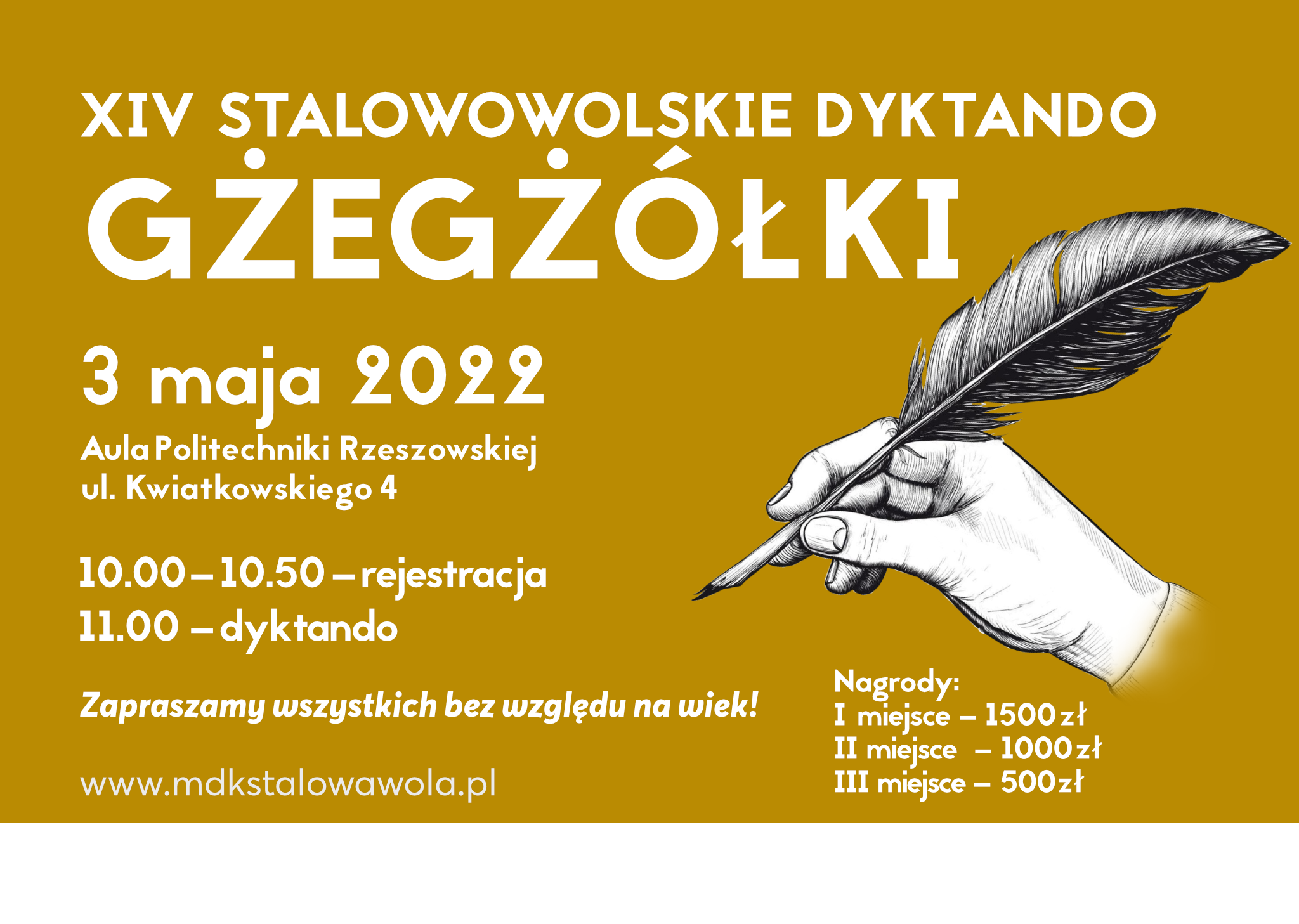 Dyktanda zawsze były wyzwaniem. Jednak w dzisiejszych czasach to wyjątkowo trudna sztuka zmagania się z dziedziną, która poprzez postęp technologiczny staje się nam coraz bardziej obca. Stan naszej aktualnej wiedzy o języku polskim będzie można sprawdzić 3 maja o godz. 11.00 podczas XIV Stalowowolskiego Dyktanda „Gżegżółki”.