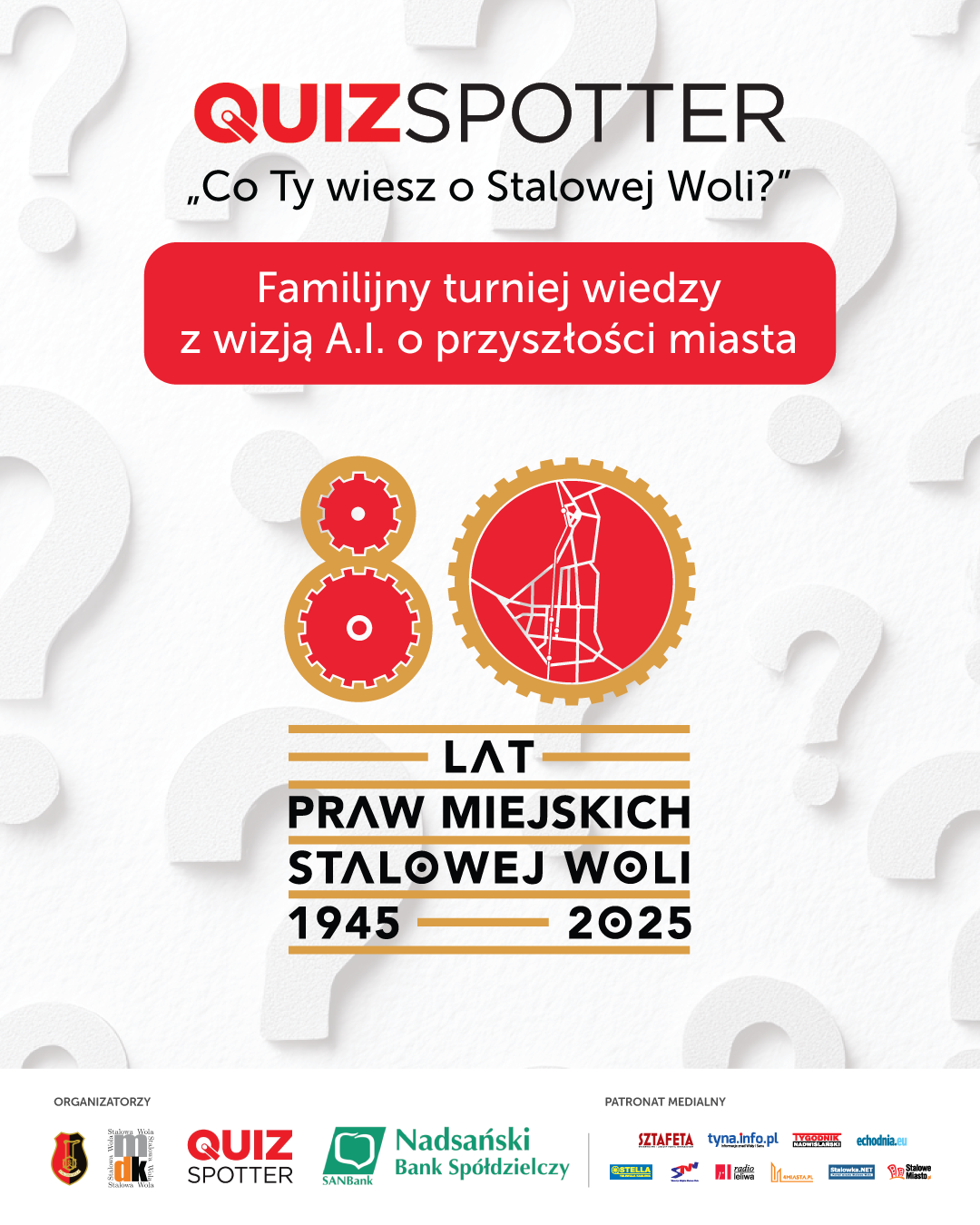 Jubileusz 80-lecia nadania praw miejskich Stalowej Woli jest okazją do sprawdzenia, co wiemy o naszym mieście. Zapraszamy do udziału w Familijnym Turnieju Wiedzy Quizspotter, który towarzyszy Festiwalowi STALOVE.